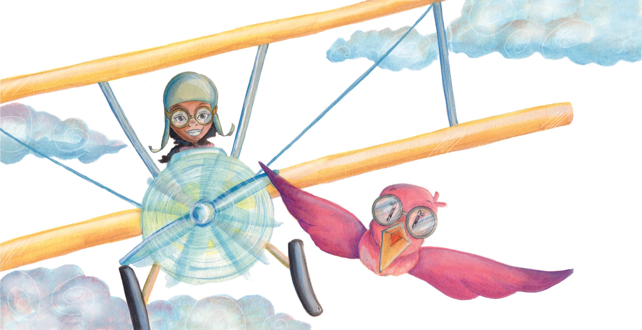 Our very first book is inspired by Bessie Coleman, the first African American woman to receive her commercial pilot’s license. When Bessie was growing up, nobody could have imagined that a girl like her would get out of the cotton fields and go on to become a pilot. The actual story gets supported visually too, with the book’s art work showing Bessie as she was – a little black girl with curly hair and a princess in her own unique way.